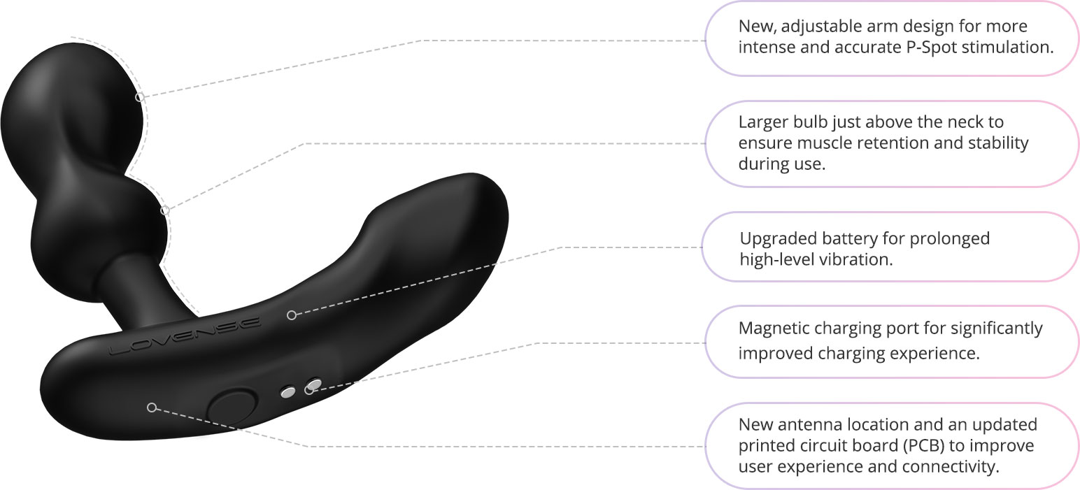 Το Edge 2 έχει αρκετές τροποποιήσεις για να το κάνει ακόμα πιο ελκυστικό από πριν. Η θύρα μαγνητικής φόρτισης καθιστά τη διαδικασία φόρτισης πιο ομαλή εμπειρία. Η βελτιστοποιημένη διάταξη και ο σχεδιασμός της κεραίας εξασφαλίζει μια πιο σταθερή σύνδεση. Για να προωθήσουμε τα πλεονεκτήματα του ρυθμιζόμενου και εισαγόμενου βραχίονα, ενημερώσαμε το σχέδιο του Edge 2 φτιάχνοντας έναν μεγαλύτερο λαμπτήρα ακριβώς πάνω από το λαιμό. που παρέχει περισσότερη σταθερότητα και ακόμη ισχυρότερη διέγερση P-Spot. Η αναβαθμισμένη μπαταρία θα επιτρέπει στους χρήστες να απολαμβάνουν παρατεταμένους, ισχυρότερους κραδασμούς. Δεν θέλετε να χάσετε αυτήν την εμπειρία